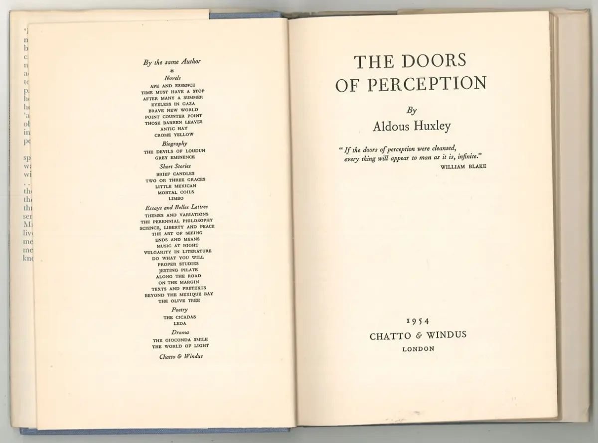Bemerkungen: EA. - Erstausgabe von Aldous Huxleys (1894-1963) autobiographisher Erzählung, die im Februar 1954 erschien. Mit dem seltenen Original-Umschlag.