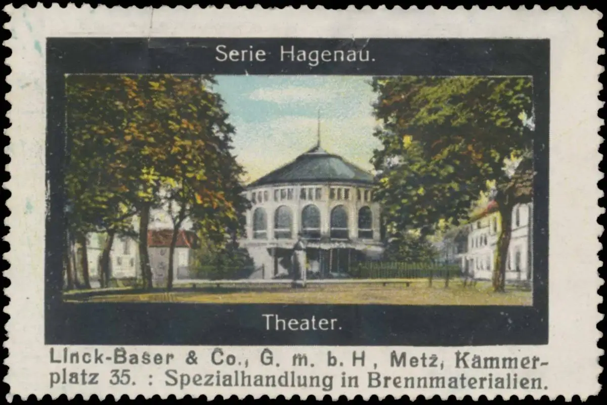 Serie Hagenau, Linck-Baser & Co. GmbH, Metz, Kammerplatz 35, Spezialhandlung in Brennmaterialien, Größe/Zustand: 4x7 , beschädigt, Original alte Reklamemarke die seinerzeit für die Werbung benutzt wurde