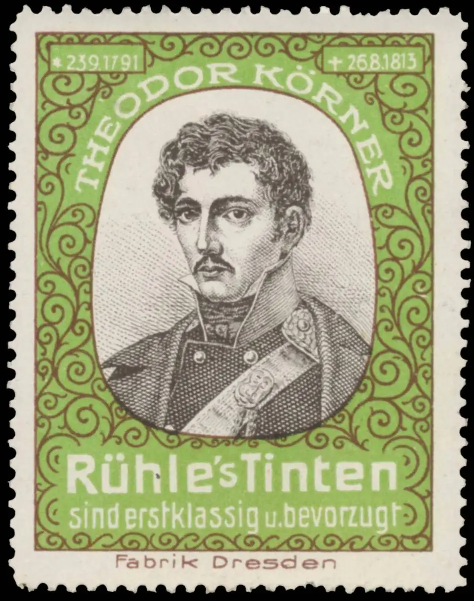 Rühles Tinten sind erstklassig und bevorzugt, Tinte, grün, Größe/Zustand: 5x4 , guter Zustand, Original alte Reklamemarke die seinerzeit für die Werbung benutzt wurde