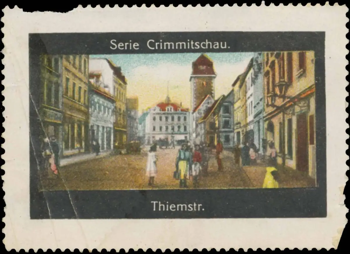 Serie Crimmitschau, Größe/Zustand: 5x7 , beschädigt, Original alte Reklamemarke die seinerzeit für die Werbung benutzt wurde