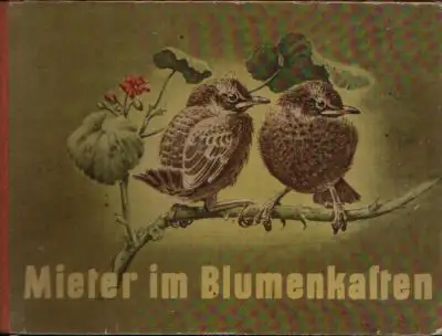 Mieter im Blumenkasten; Thomale, Margit; Kinderbuch; Tiergeschichten; Amselpärchen; legen euer in Blumenkasten; neben Blumen; 10 Tage schlüpfen die Jungen; leider nur zwei; Amseleltern füttern emsig; sind bald groß; können selbst fliegen und futter suchen