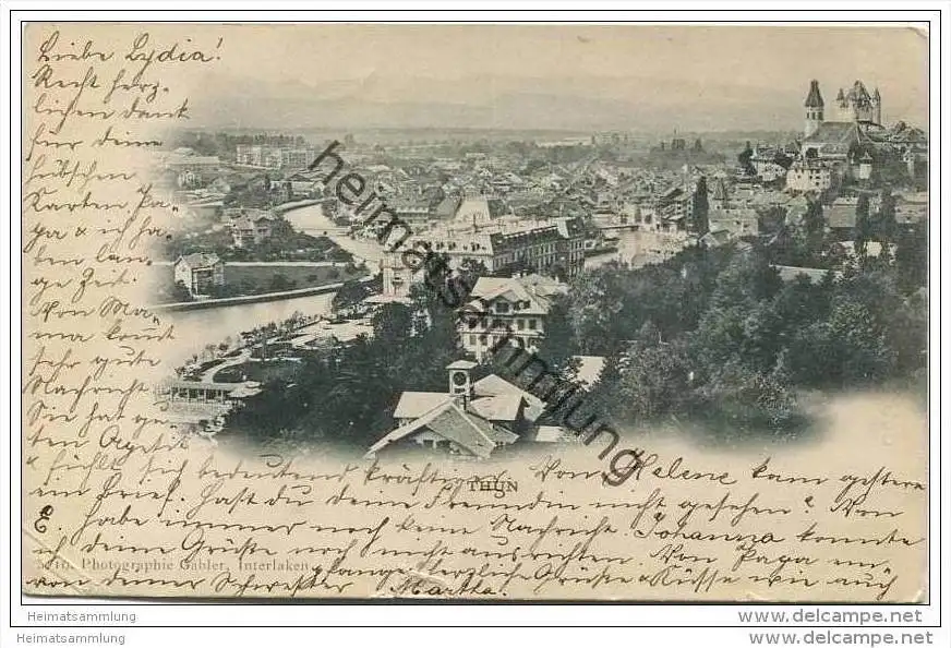 Thun - Verlag Photographie Gabler Interlaken - Marke entfernt - starke Gebrauchsspuren - Einriss - Eckknick (G25564y) gel. 1900