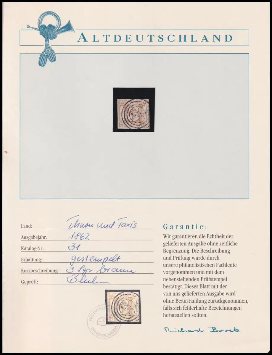 Thurn & Taxis 31 gestempelt mit Borek Garantie #OB009