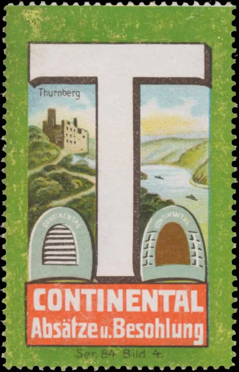 Continental Absätze und Besohlung, Serie 84, Bild 4, Größe/Zustand: 6x4 , Fehldruck, guter Zustand, Original alte Reklamemarke die seinerzeit für die Werbung benutzt wurde