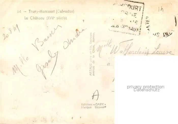 Thury-Harcourt Château XVIIe siècle Schloss Thury-Harcourt postalisch gelaufen 1921-1965 Erhaltung siehe scans [FriedD77] Frierer