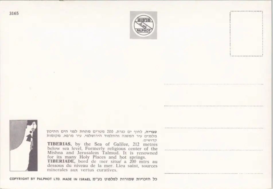 Tiberias ‏טבריה‎ Twerja ‏طبرية‎ TIBERIAS, Israel, Sea of Galilee, 1980