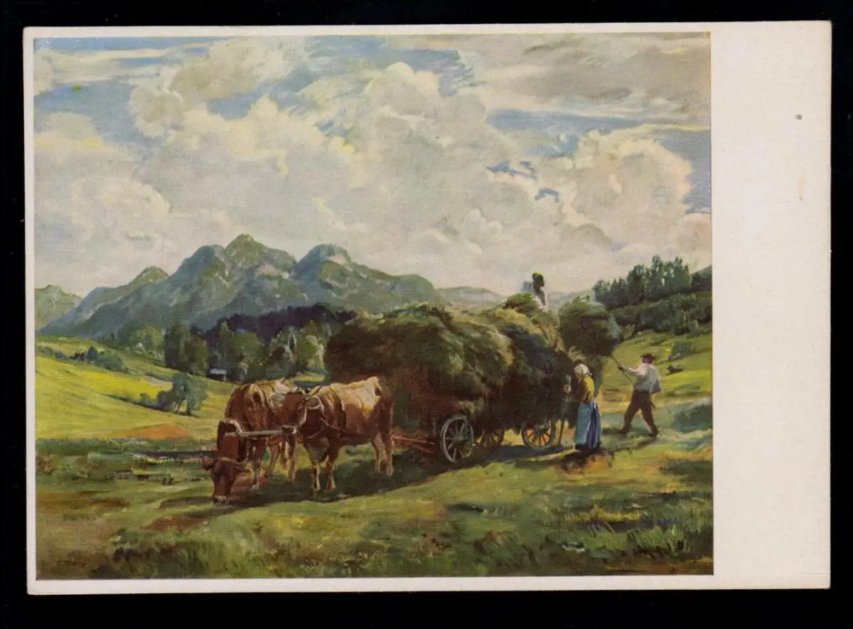 Tiere-AK Harald Tillberg: Heuernte - Feldarbeit mit Ochsengespann, ungebraucht