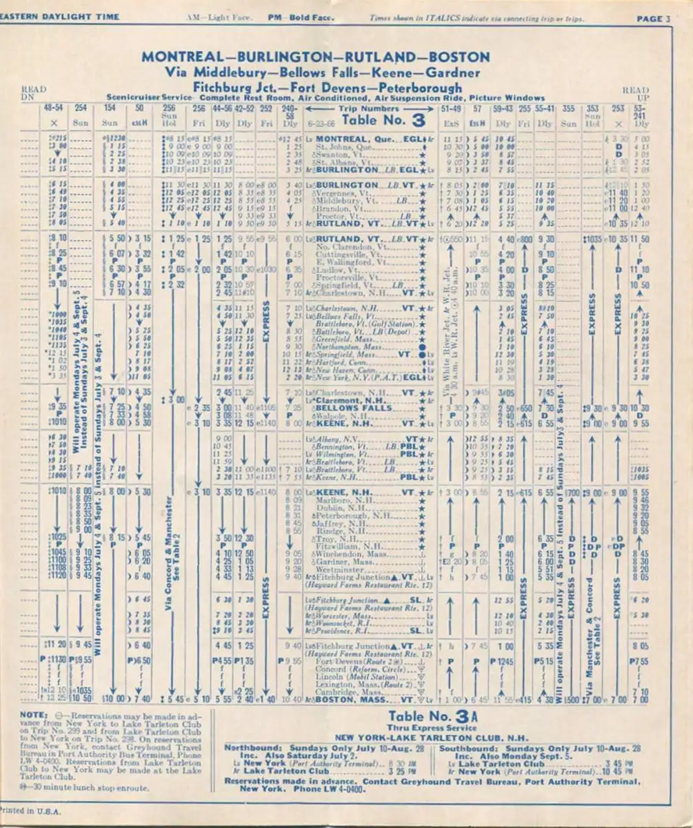 Time Table 1966 - Vermont Transit Lines - 8 Seiten