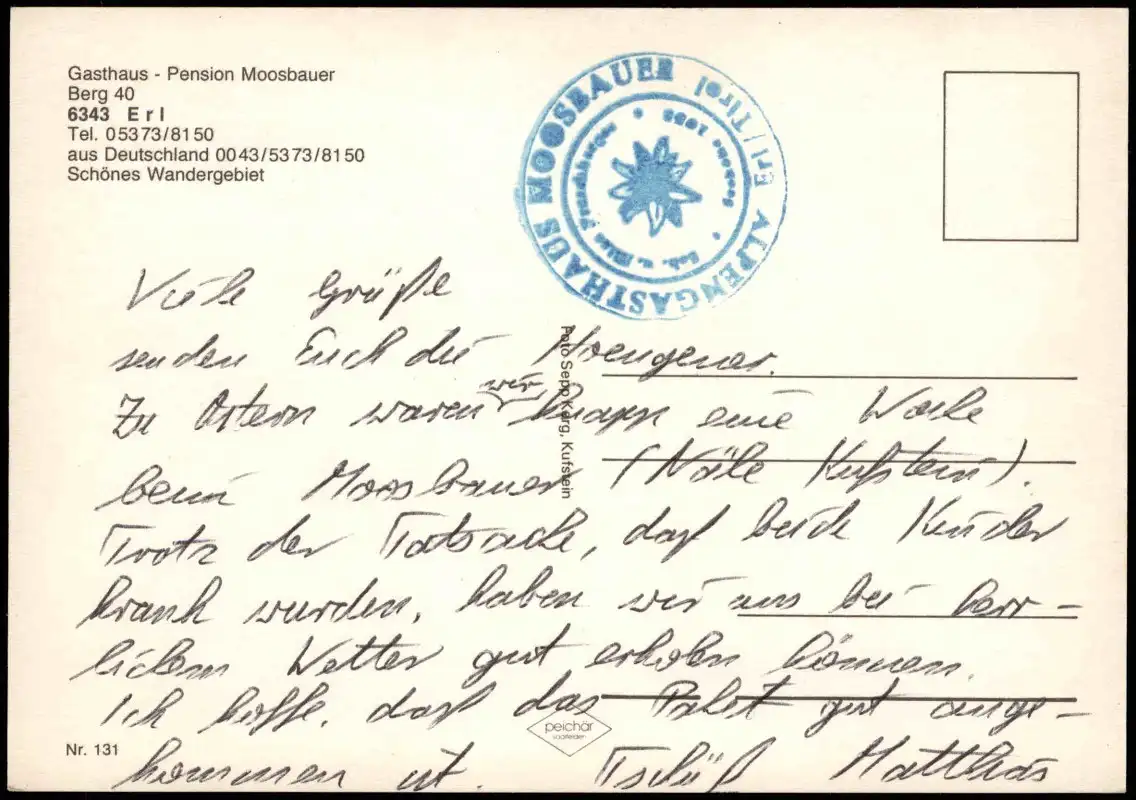 .Tirol Gasthaus Pension Moosbauer Alpengasthof in ERL Tirol 1980