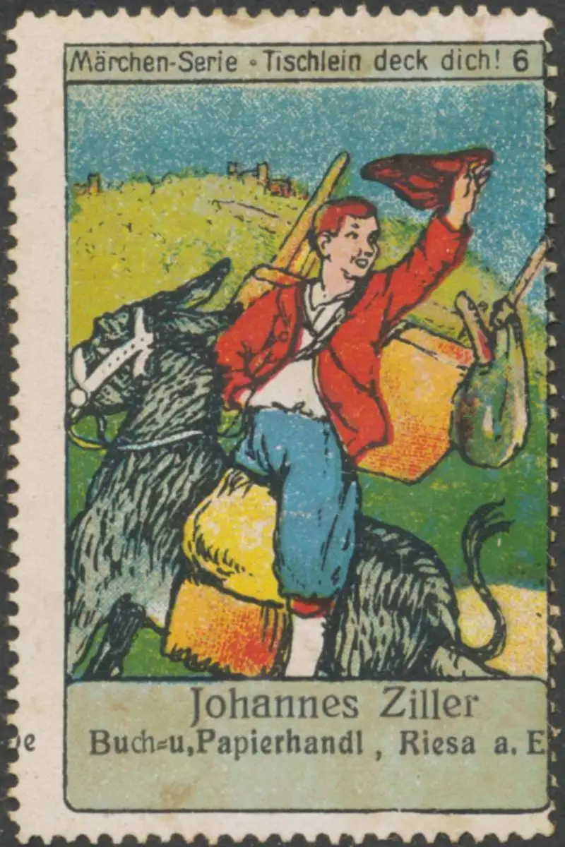 Märchen Serie, Nr. 6, Buchhandlung und Papierhandlung, Größe/Zustand: 4x6 , leicht fleckig, Original alte Reklamemarke die seinerzeit für die Werbung benutzt wurde