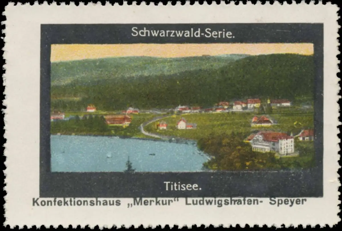 Serie: Schwarzwald, Konfektionshaus Merkur, Ludwigshafen, Speyer, Größe/Zustand: 4x7 , guter Zustand, Original alte Reklamemarke die seinerzeit für die Werbung benutzt wurde