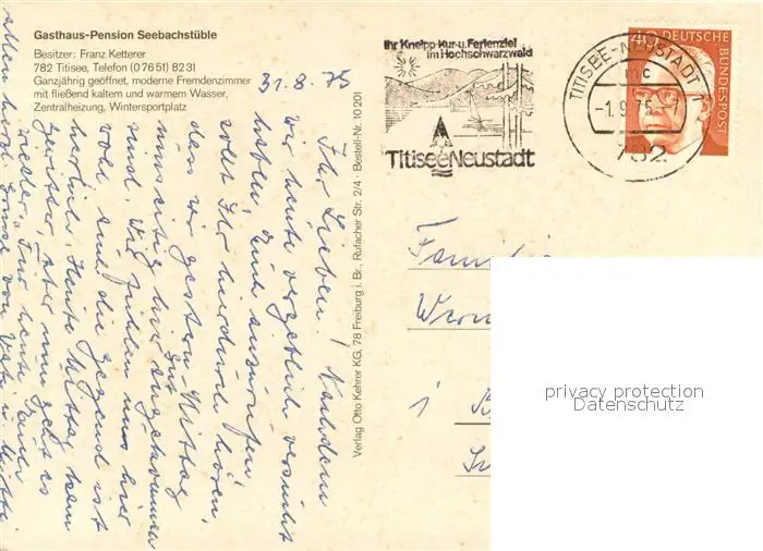 Titisee Gasthaus Pension Seebachstueble Gaststube Bootsliegeplatz Titisee postalisch gelaufen 1975 Erhaltung siehe scans [WerneD78] WernPID7