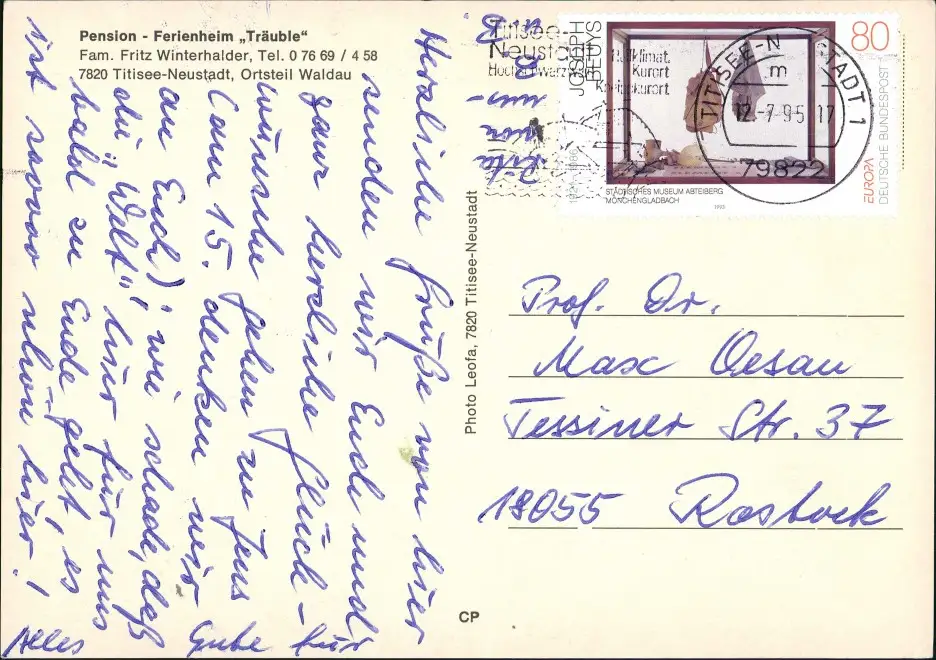 Titisee-Neustadt Pension Ferienheim „Träuble" Fam. Fritz Winterhalder 1995