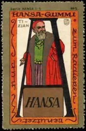 Benutzet nur Hansa Gummi zum Radieren. Buchstabenserie Hansa Nr. 5, Größe/Zustand: 7x5 , guter Zustand, Original alte Reklamemarke die seinerzeit für die Werbung benutzt wurde