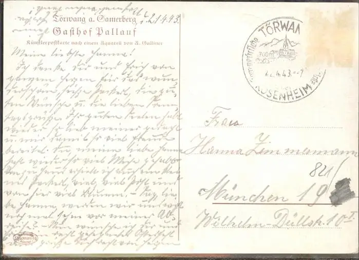Toerwang Gasthof Pallauf Samerberg postalisch gelaufen 1943 gute Erhaltung Alte Ansichtskarte Postkarte Elvigtle