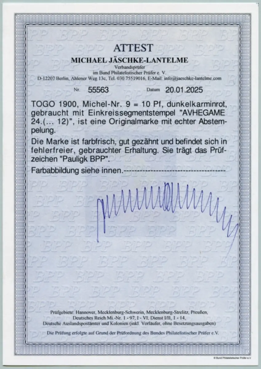 Fotoattest Jäschke-Lantelme BPP aus 2025.