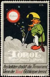 am hellsten strahlt das Firmament, wenn der Torol - Glühkörper brennt, Beleuchtung, Licht, Zwerg, Größe/Zustand: 7x4 , guter Zustand, Original alte Reklamemarke die seinerzeit für die Werbung benutzt wurde
