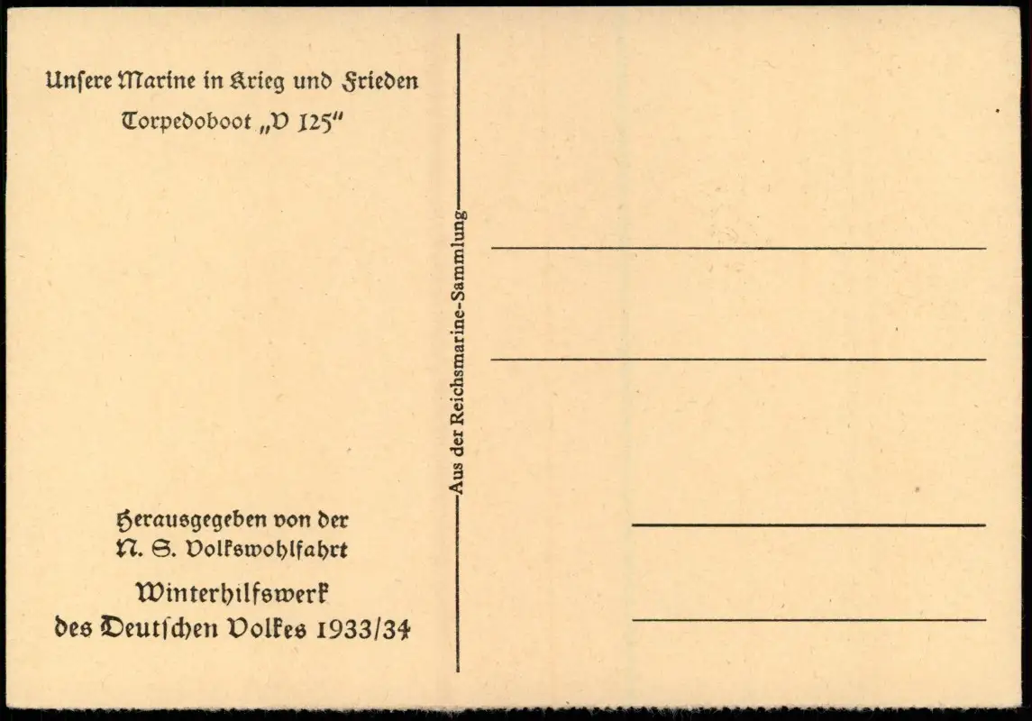 Torpedoboot ,,V 125" Schiffe/Schifffahrt - Kriegsschiffe (Marine) 1934