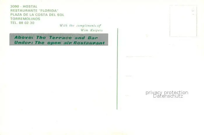 Torremolinos Hostal Restaurante Florida Gartenterrasse Torremolinos postalisch nicht gelaufen nach 1965 Erhaltung siehe scans [FriedD77] Frierer