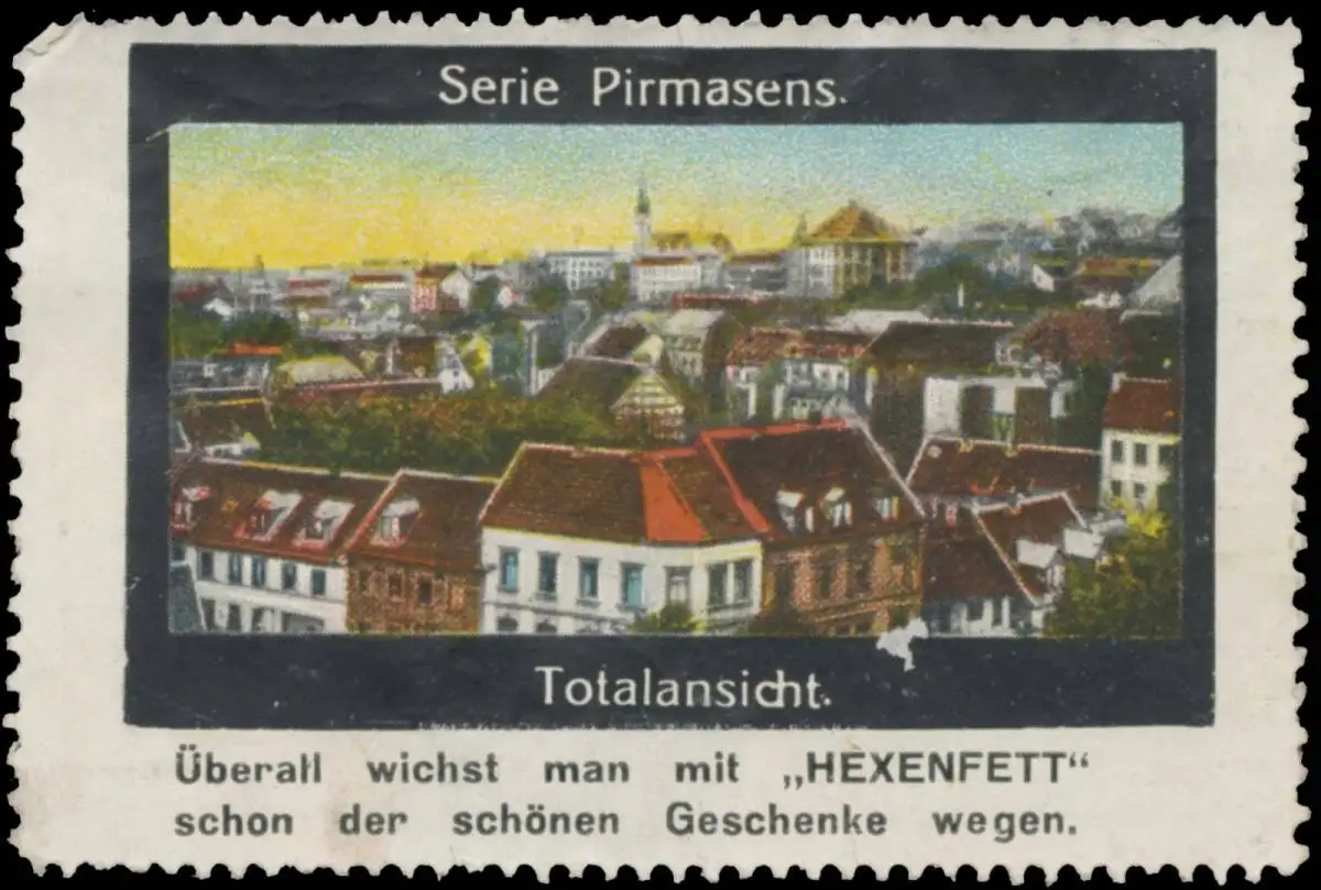 Überall wichst man mit Hexenfett, schon der schönen Geschenke wegen. Schuhputz. Serie: Pirmasens, Größe/Zustand: 5x7 , beschädigt, Original alte Reklamemarke die seinerzeit für die Werbung benutzt wurde