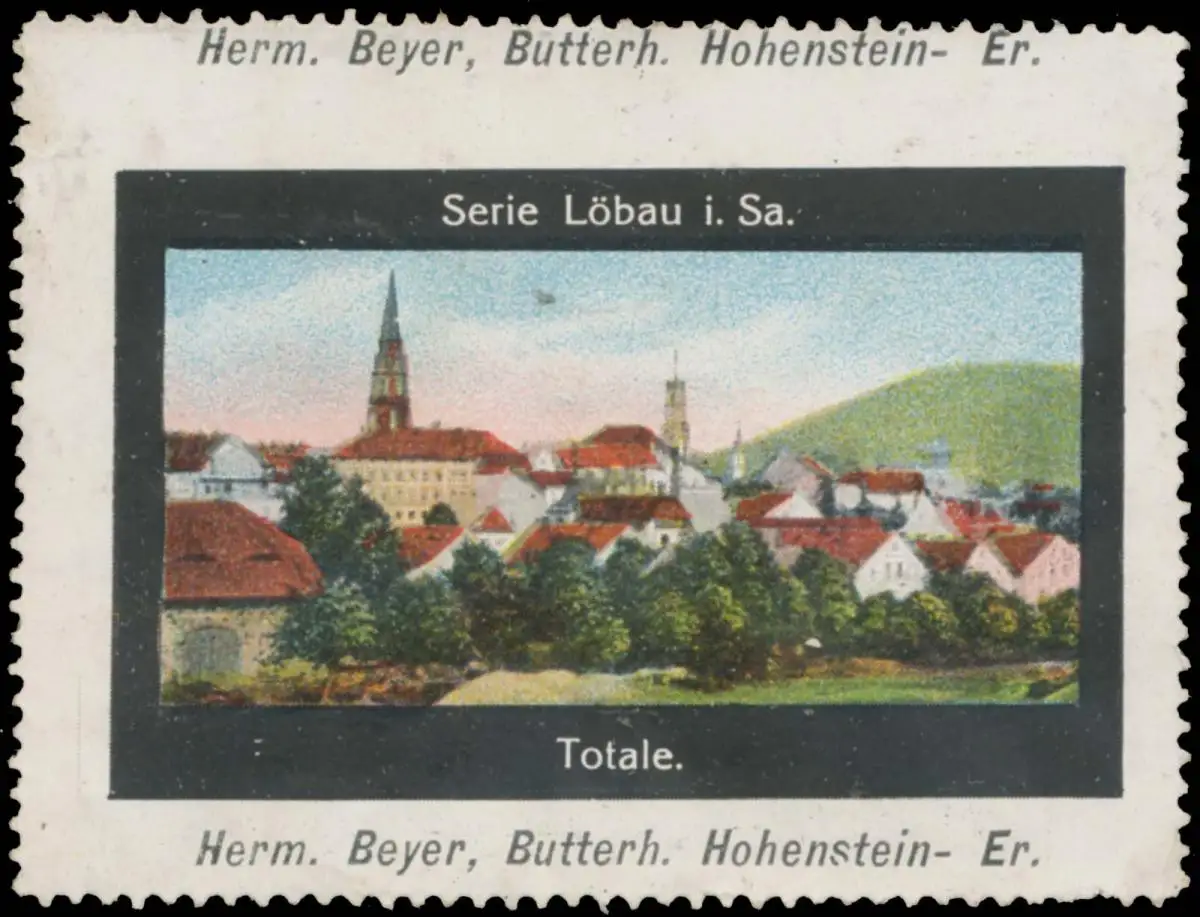 Serie Löbau in Sachsen, Größe/Zustand: 4x6 , fleckig, Original alte Reklamemarke die seinerzeit für die Werbung benutzt wurde