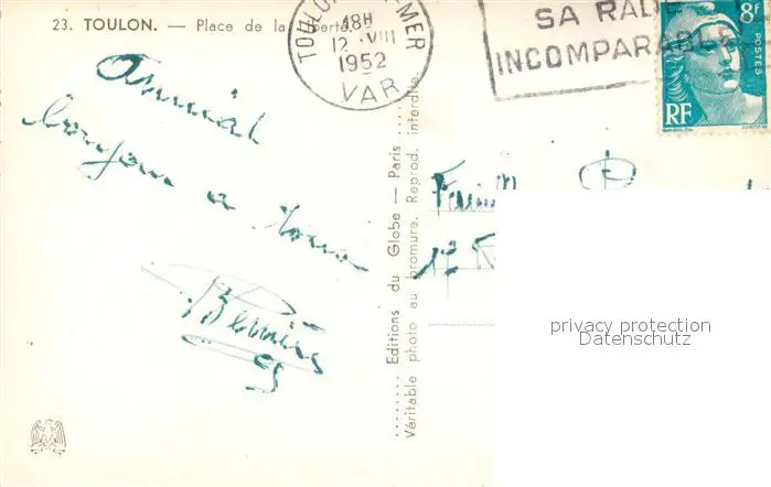 Toulon_Var Place de la Libert Toulon_Var postalisch gelaufen 1952 Erhaltung siehe scans [LiesaD40] LiesID40