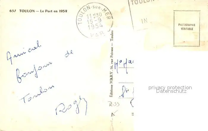 Toulon_Var Porte Toulon_Var postalisch gelaufen 1954 Erhaltung siehe scans [LiesaD40] LiesID40
