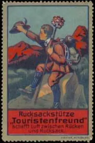 Rucksackstütze, Größe/Zustand: 6x4 , guter Zustand, Original alte Reklamemarke die seinerzeit für die Werbung benutzt wurde