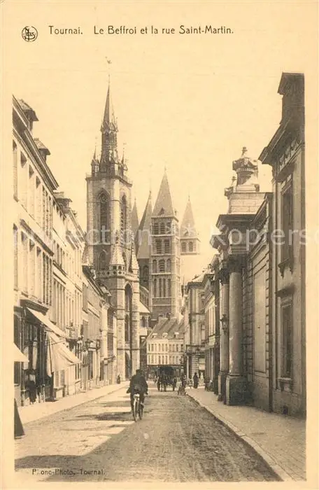 Tournai Le Beffroi et la rue Saint Martin Tournai postalisch nicht gelaufen 1921-1965 Erhaltung siehe scans [WerneD78] WernPID7
