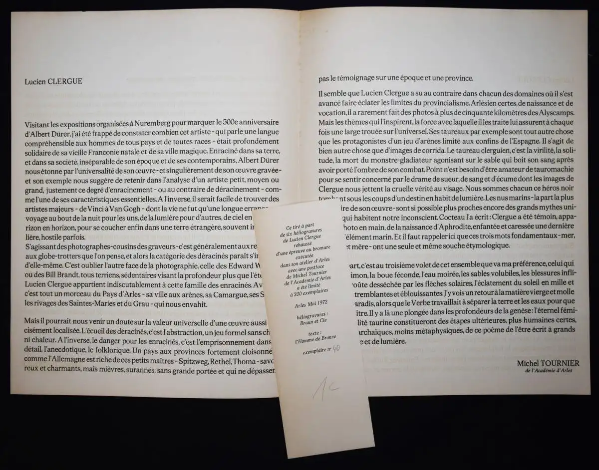 Lucien Clergue. Arles, chez l’artiste Mai 1972. Imperial-Folio (48 x 37