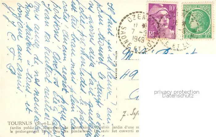 Tournus Jardin public Monument du Centenaire Tournus postalisch gelaufen 1949 Erhaltung siehe scans [WerneD78] WernPID7