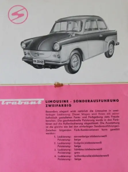 Trabant Modellprogramm 1960 Automobilprospekt (0342)