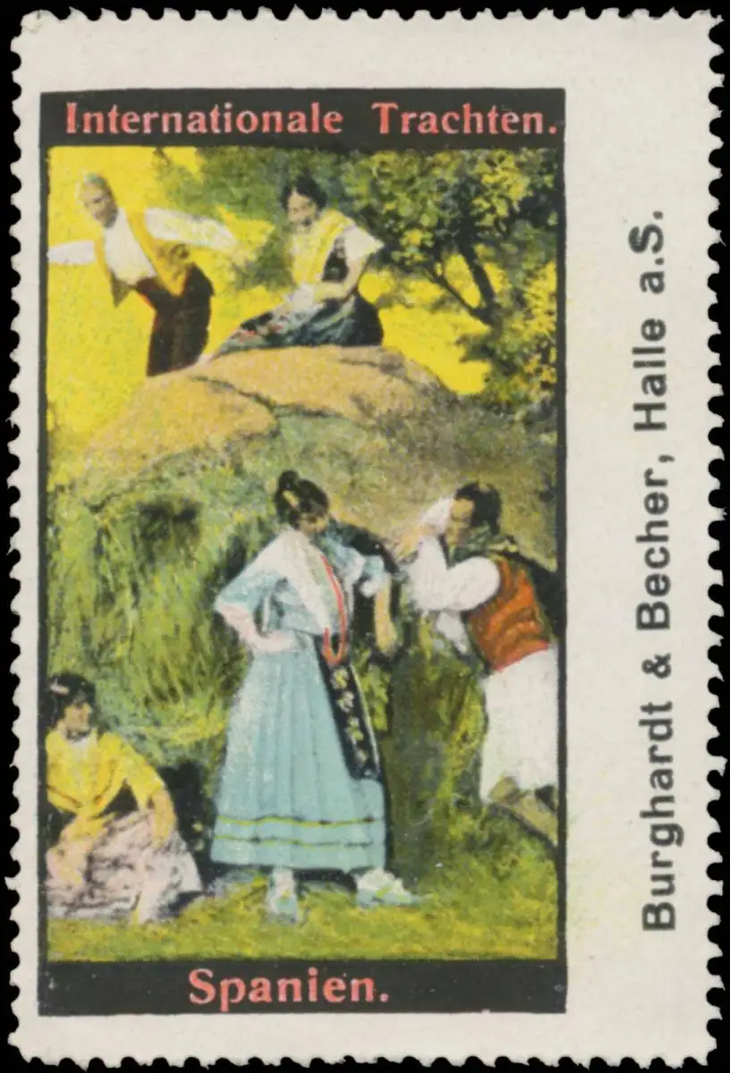 Serie: Internationale Trachten, Haus- & Küchengeräte, Größe/Zustand: 6x4 , leicht geknickt, Original alte Reklamemarke die seinerzeit für die Werbung benutzt wurde