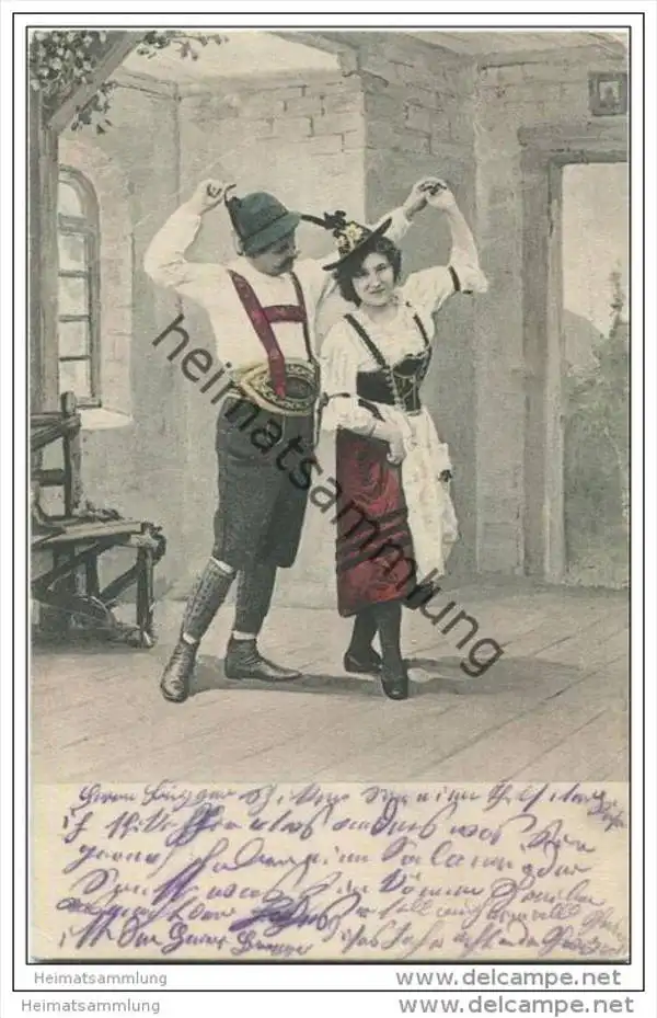 Tracht - Tanz - coloriert - rechter Rand gestaucht (E9783) gel. 1904