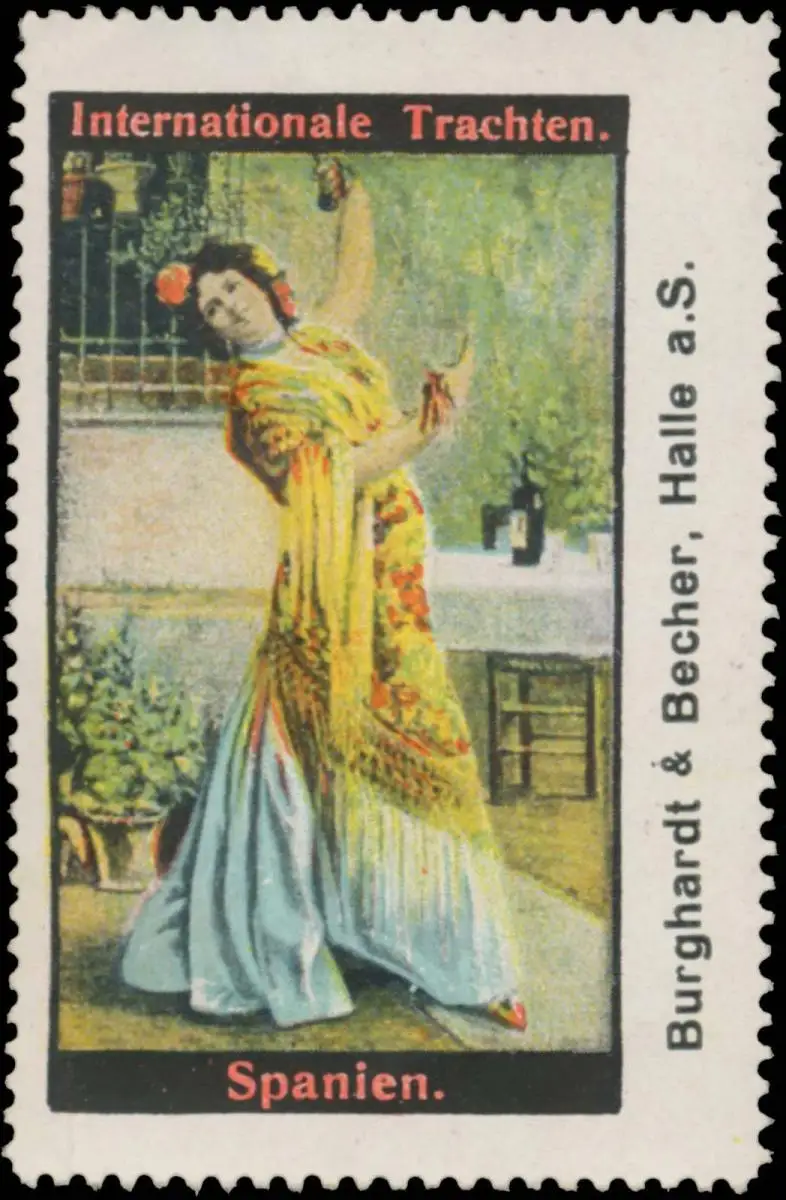 Serie: Internationale Trachten, Kaufhaus Burghardt & Becher, Haus- und Küchengeräte, Leipziger Straße 10, Halle/Saale, Größe/Zustand: 6x4 , guter Zustand, Original alte Reklamemarke die seinerzeit für die Werbung benutzt wurde