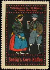 Volkstrachten in 100 Bildern, Bild 76, Seeligs Korn-Kaffee, Größe/Zustand: 5x4 , guter Zustand, Original alte Reklamemarke die seinerzeit für die Werbung benutzt wurde