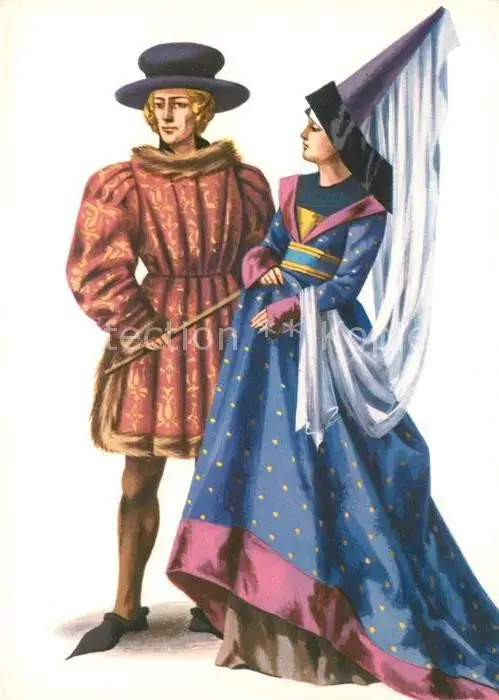 Trachten Festkleidung Schmuckgewaender XV. Jahrhundert postalisch nicht gelaufen nach 1965 Erhaltung siehe scans [PaolaD17] PaolPID1