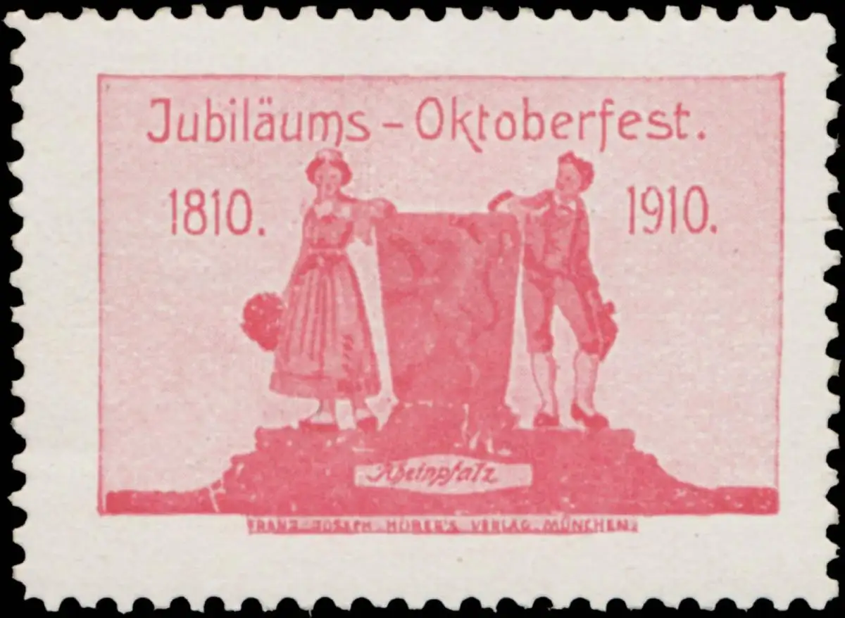 Jubiläums Oktoberfest, Druck: Frans Joseph Huber, München, Größe/Zustand: 3x4 , guter Zustand, Original alte Reklamemarke die seinerzeit für die Werbung benutzt wurde