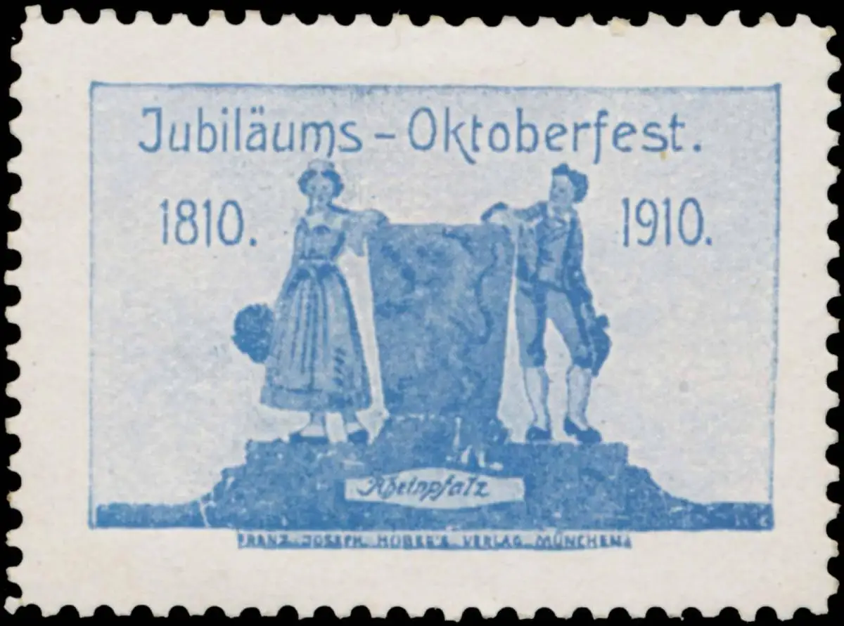 Jubiläums Oktoberfest, Druck: Frans Joseph Huber, München, Größe/Zustand: 3x4 , guter Zustand, Original alte Reklamemarke die seinerzeit für die Werbung benutzt wurde