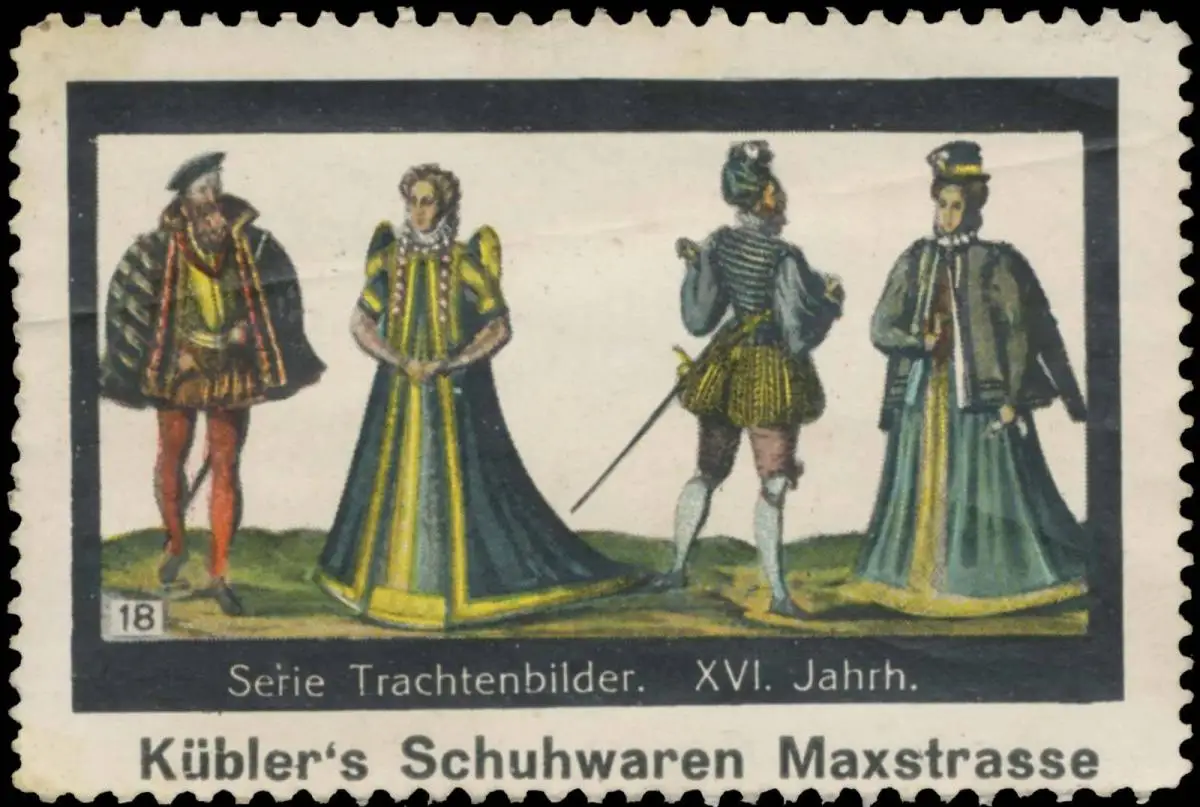 Küblers Schuhwaren, Serie Trachtenbilder, Nr. 18, Größe/Zustand: 4x6 , beschädigt, Original alte Reklamemarke die seinerzeit für die Werbung benutzt wurde