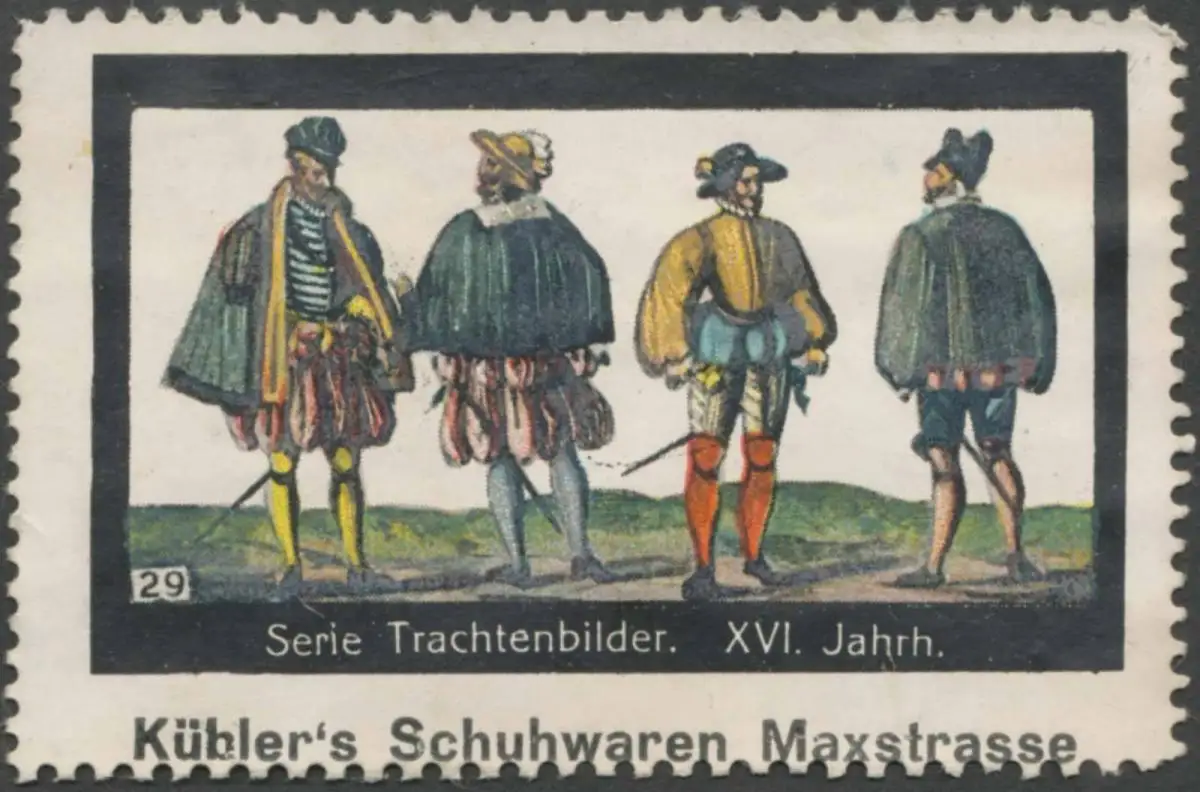 Küblers Schuhwaren, Serie Trachtenbilder, Nr. 29, Größe/Zustand: 4x6 , guter Zustand, Original alte Reklamemarke die seinerzeit für die Werbung benutzt wurde