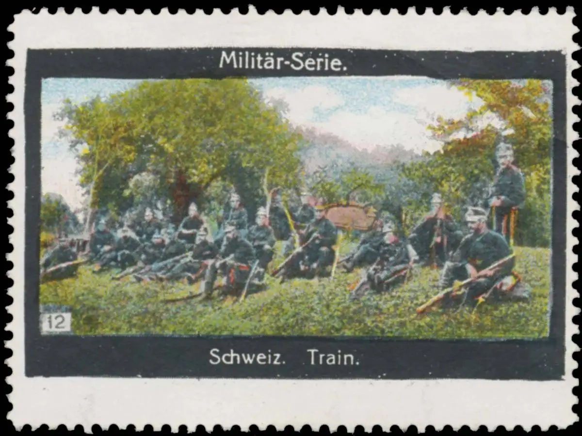 Militär-Serie, Bild 12, Größe/Zustand: 4x6 , guter Zustand, Original alte Reklamemarke die seinerzeit für die Werbung benutzt wurde