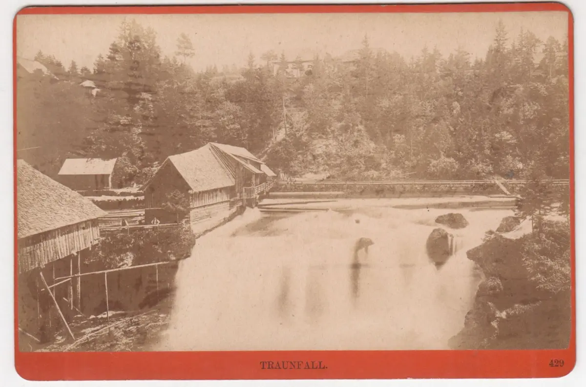 Bemerkungen: Starl 523 - Der Traunfall ist ein Wasserfall der Traun in Oberösterreich. Er befindet sich zwischen den beiden Orten Steyrermühl und Roitham am Traunfall. Der Wasserfall hat eine Fallhöhe von rund zwölf Metern und ein Mehrfaches der Breite des Flussbetts. Auf einer Flussstrecke von rund 200 Metern verläuft der Fall diagonal vom linken Flussufer zum rechten. Im Zuge der Kraftwerkserrichtung `Traunfall` um 1900 wurde der `wilde Fall` durch eine Wehranlage aus Beton stark verändert und der Fallkanal für die Flößer, auch `guter Fall` genannt, eliminiert.