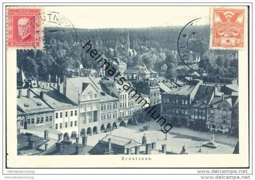 Trautenau (Trutnov) - Markt - Verlag Hamann & Lehmann Trautenau - rückseitig Klebestellen (E599) gel. 1926