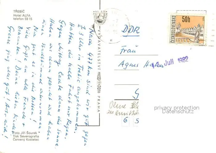 Trebic Hotel Alfa Gastraum Bar Trebic postalisch gelaufen 1982 Erhaltung siehe scans [WerneD78] WernPID7