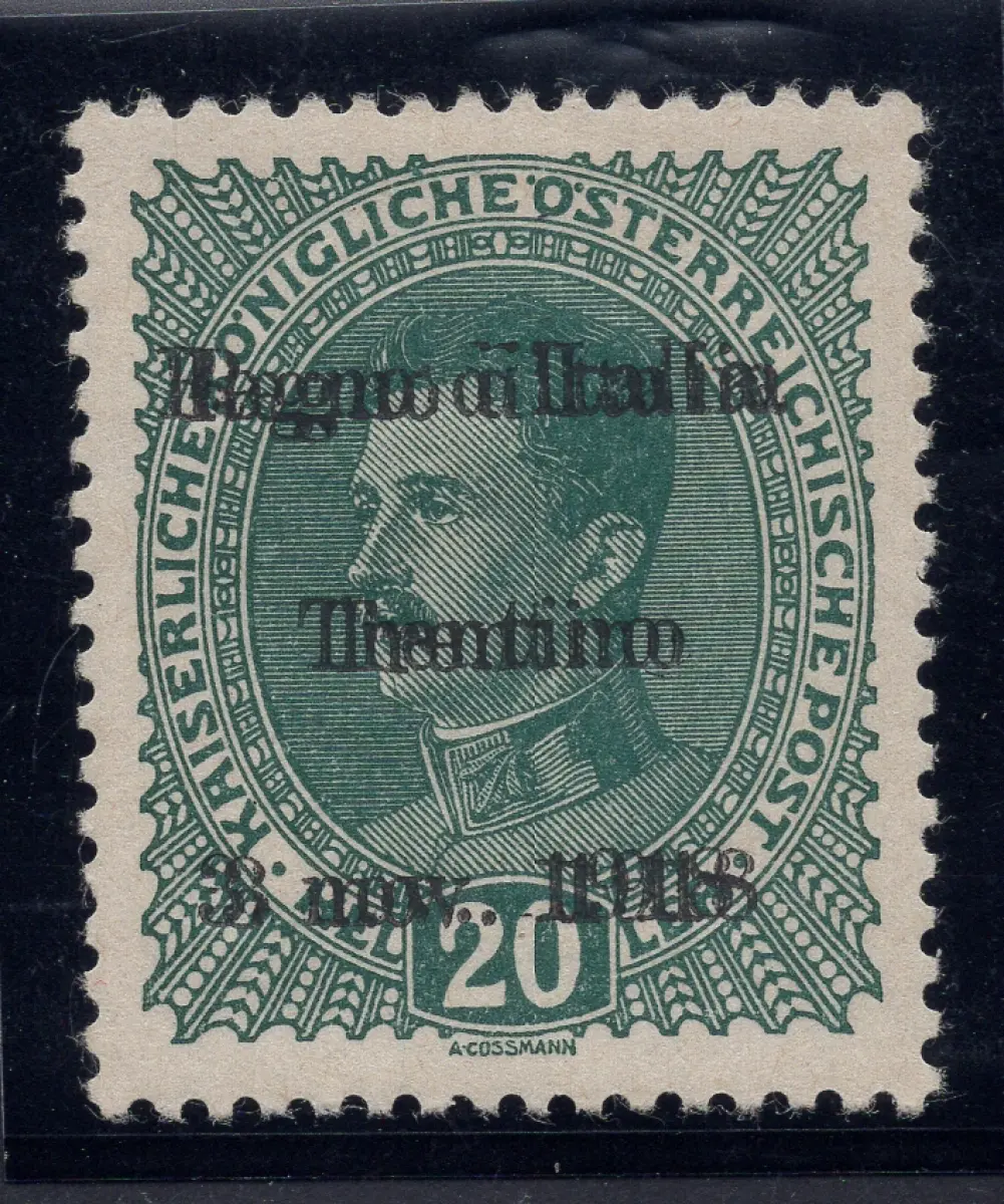 MH - Linguellato - Trentino Alto Adige 20 Heller Nr. 7c Doppelaufdruck neu, perfekt mit Spur von Linguella signiert Mondolfo und Raybaudi - Kat. euro 260 Cod. 2835/WEB