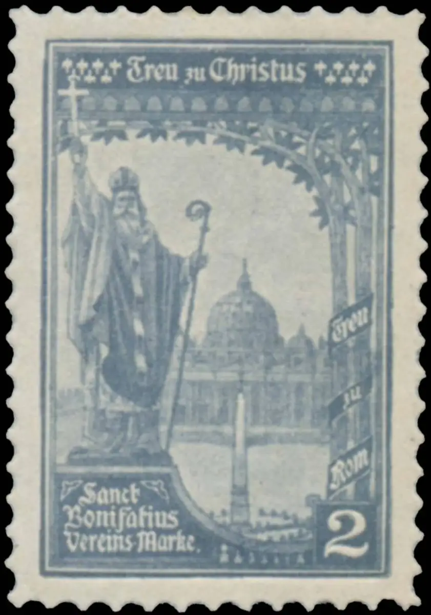 Sankt (St.) Bonifatius Vereinsmarke, Spendenmarke, Wehrschatzmarke, Kirche, Größe/Zustand: 3x2 , guter Zustand, Original alte Reklamemarke die seinerzeit für die Werbung benutzt wurde
