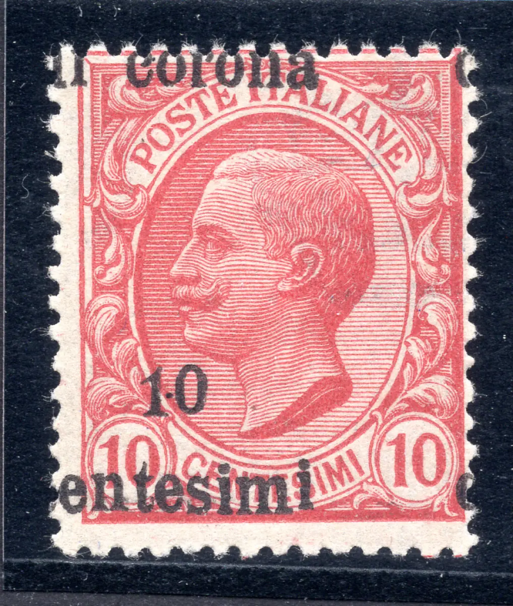 Trient und Triest - Löwen Cent. 10 verschobene Überdrucksorten Vollgummi - Trient und Triest Cent. 10 n. 3uft stark verschobener Aufdruck unten links - Ungewöhnlich - Kat. euro 210 Cod. 879/11