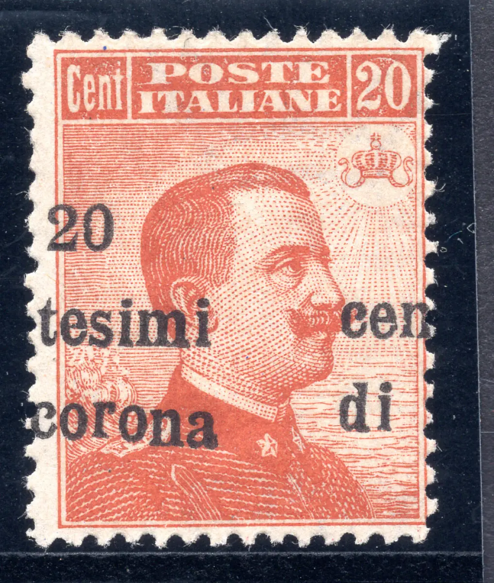 Trient und Triest - Michetti Cent. 20 Sorten verschobener Vollgummi - Trient und Triest - Michetti 20 Cent. n.5ufa stark nach rechts verschobener Aufdruck (zu Pferd) - Ungewöhnlich - Kat. euro 210 Cod. 880/11