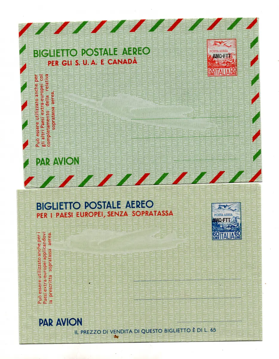 Triest A - Aerogramma Aereo Lire 60 e 120 n. A1/A2